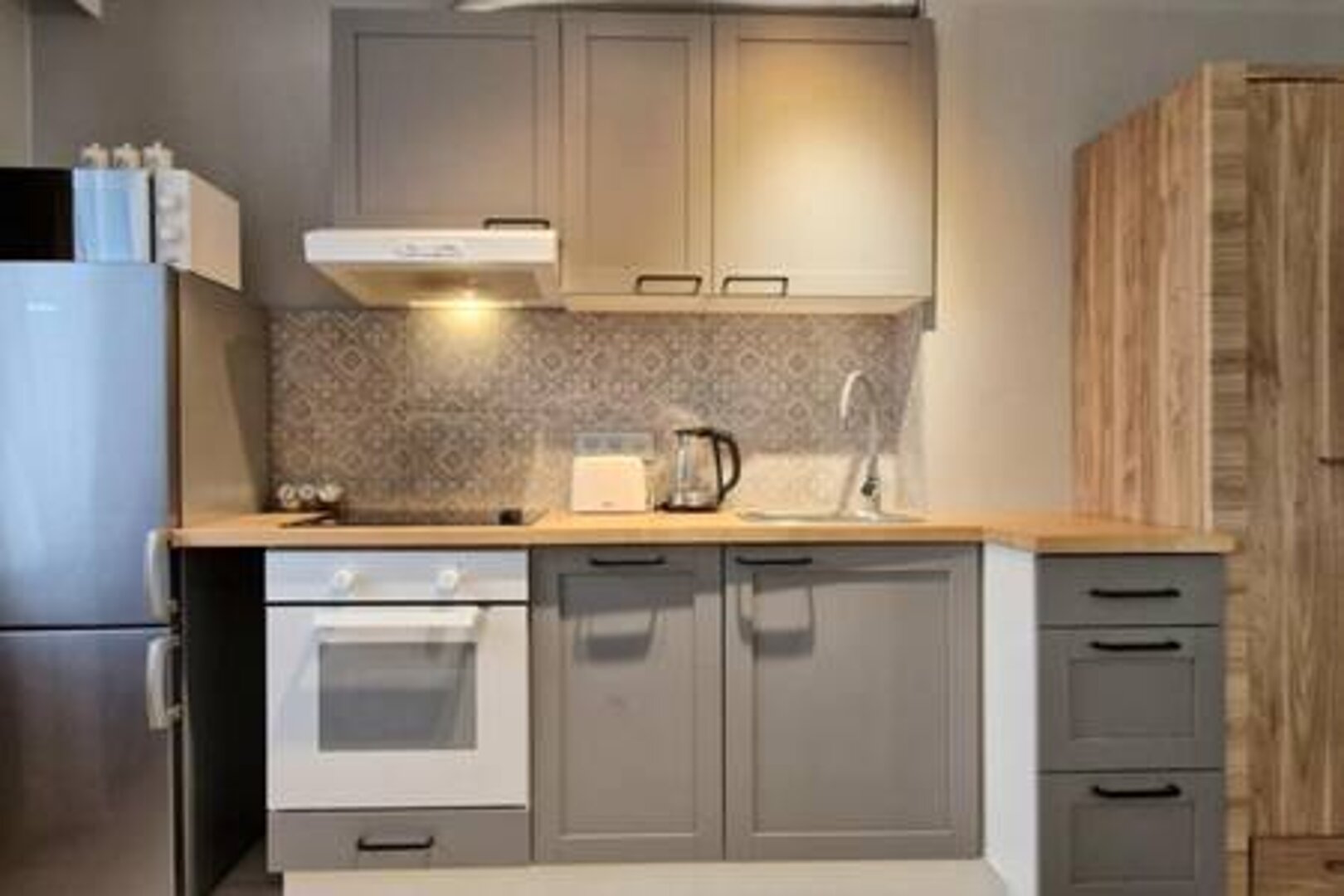 ASTORIA MAGIC GREY to nowoczesny apartament dla 4 osób. Znajduje się na ul. Poznańskiej 15 w centrum Krakowa w pięknym apartamentowcu, ok. 20 minut spacerem do Rynku Głównego, Wawelu i muzeów. W części sypialnej jest duże małżeńskie łóżko oraz wersalka.