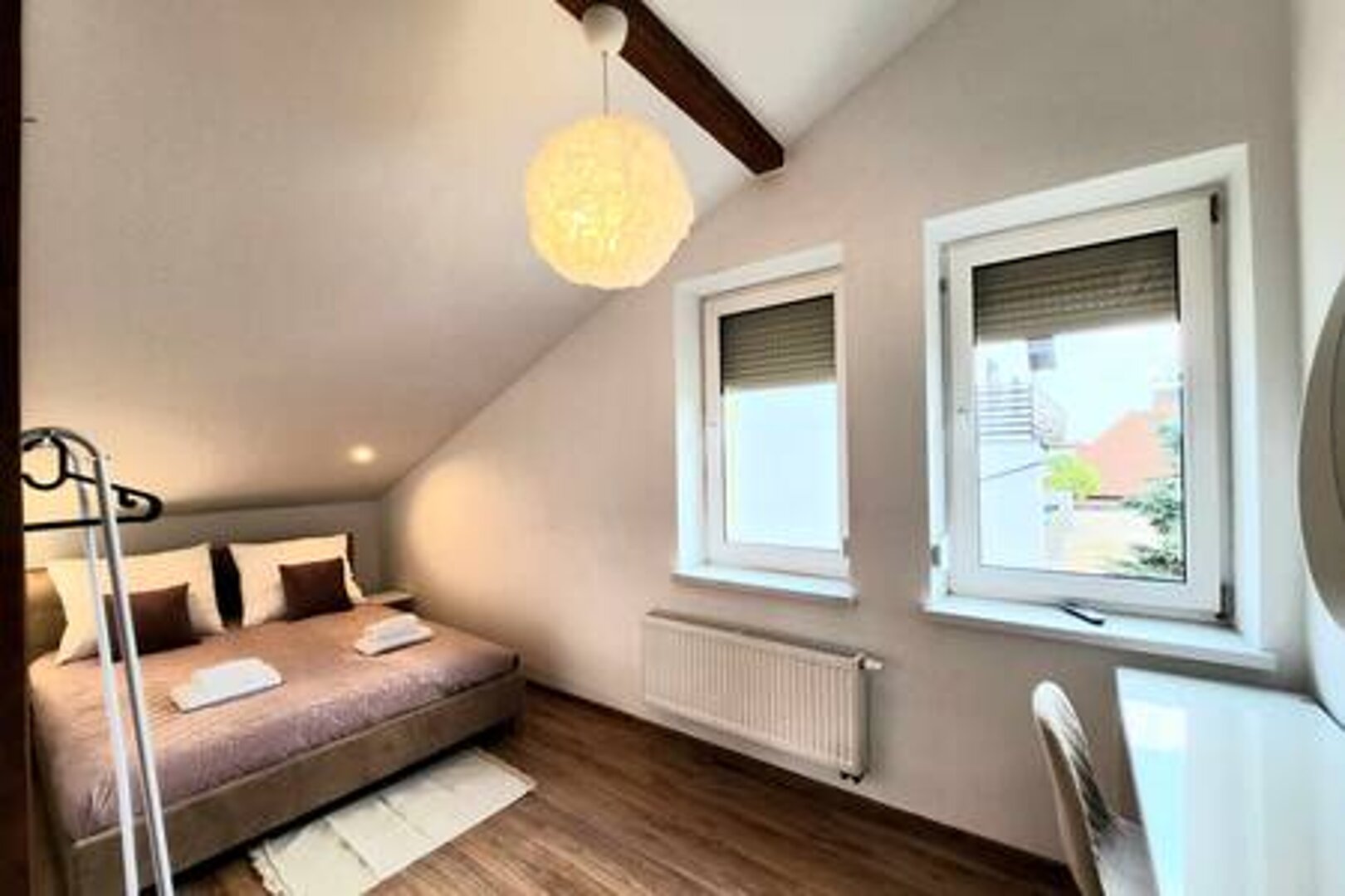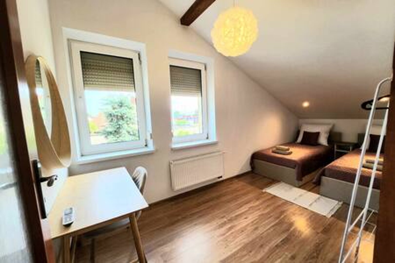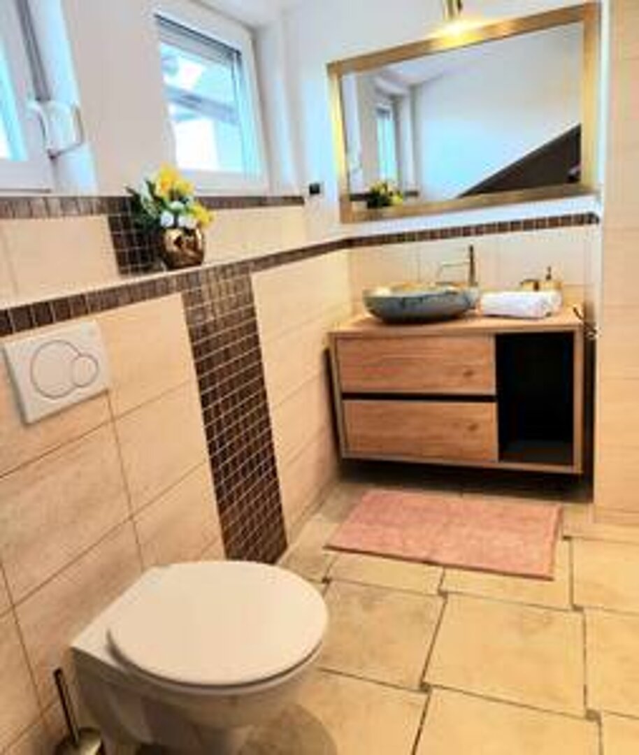 To wyjątkowy 2 - poziomowy apartament w doskonałej lokalizacji: 15 minut samochodem od lotniska Balice oraz 15 minut od Starego Miasta :) Apartament 3 pokojowy o pow. 72 m² usytuowany jest w wolnostojącym budynku . Posiada własne wejście. W budynku znajduje się tylko 1 apartament! Bezpłatny parking na 2 samochody! W apartamencie może przebywać maksymalnie 6 osób. Doskonały dla par przyjaciół jak i dla rodzin :) Apartament jest luksusowo wyposażony. Apartament jest luksusowo wyposażony. PARTER: Szafa oraz szafka na buty. Na piętro prowadzą piękne DREWNIANE - KRĘCONE schody. PIĘTRO: SALON: rozkładany narożnik, stolik kawowy,duży stół + 4 krzesła, stolik rtv , duży telewizor. KUCHNIA: lodówka z zamrażarką i zmywarka w zabudowie, mikrofalówka, toster, ekspres do kawy, czajnik elektryczny, płyta indukcyjna, talerze, garnki, patelnie, szklanki, kubki, kieliszki , sztućce itd - JAK W DOMU :) SYPIALNIA 1 : duże łóżko małżeńskie 160 x 200, toaletka z lutrem , krzesło, stoliki nocne i lampki nocne. SYPIALNIA 2: 2 łóżka 100 x 200, stolik nocny, toaletka z lustrem i krzesło. ŁAZIENKA: pralka, duża szafka z umywalką w kolorze NIEBIESKO-ZŁOTYM wraz ze złotą baterią, lustro z oświetleniem, kabina prysznicowa z baterią mosiężną i deszczownicą. Ponadto w apartamencie jest kawa, herbata, cukier, sól, pieprz, tabletki do zmywarki, komplet ręczników dla każdego gościa, papier toaletowy oraz ręcznik papierowy itp :) PRYWATNY PARKING NA 2 SAMOCHODY. APARTAMENT KLIMATYZOWANY. Apartament znajduje się w budynku wolnostojącym. Jest tylko 1 apartament w tym budynku. Okolica domków jednorodzinnych, pełna zieleni. W pobliżu ok. 100 m są 2 stacje benzynowe z gastronomią oraz sklepem. DODATKOWE KOSZTY NA ŻYCZENIE: - wcześniejsze zameldowanie w godz. 13-15: 60 zł - późniejsze wymeldowanie w godz. 11-13: 60 zł - wypożyczenie łóżeczka dziecięcego z pościelą - 20 zł/doba - wypożyczenie rozkładanego 1-osobowego łóżka z materacem i pościelą - 30 zł/doba - sprzątanie apartamentu na życzenie w trakcie pobytu: 200 zł - transfer z lotniska do apartamentu: 180 zł w godzinach 9-20 - transfer z apartamentu na lotnisko: 180 zł w godzinach 9-20 Cena 180 zł jest za transfer do 4 osób. Cena 360 zł jest za transfer 5-6 osób. Bardzo dbamy nie tylko o czystość pościeli ale również o czystość poduszek oraz kołder. Sami pierzemy pościel, poduszki, kołdry, ochraniacze, firanki itp. używając profesjonalnych środków do prania oraz duuużej ilości płynu do płukania - dzięki temu wszystko pięknie pachnie i jest lśniąco czyste :) Kołdry i poduszki pierzemy co najmniej raz / dwa razy w miesiącu lub częściej w razie potrzeby. ZAWSZE SĄ CZYSTE I PACHNĄCE! Nasza firma świadczy usługi noclegowe na najwyższym poziomie od 2018 r. Posiadamy 18 apartamentów zlokalizowanych w różnych dzielnicach Krakowa: Stare Miasto, Krowodrza, Prądnik Biały, Prądnik Czerwony oraz Borek Fałęcki. Wszystkie nasze apartamenty posiadają ocenę od 3 do 5 gwiazdek w rankingu standardów międzynarodowych wg jednego z największych międzynarodowych portali, za pośrednictwem którego można dokonywać rezerwacji również w naszych apartamentach :) SERDECZNIE ZAPRASZAMY :)